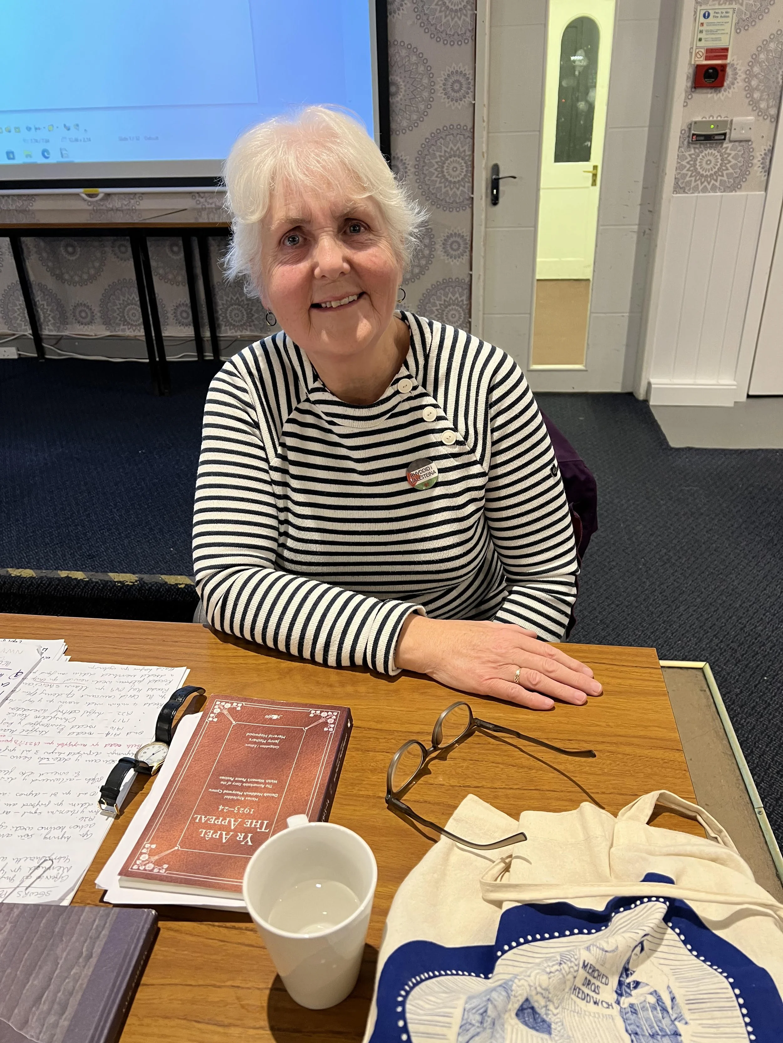 Pleser mawr oedd cael croesawu yr awdures a’r ymgyrchwraig Angharad Tomos i’n plith i drafod ‘Straeon y Ddeiseb’, sef Deiseb Heddwch y Merched 1923.