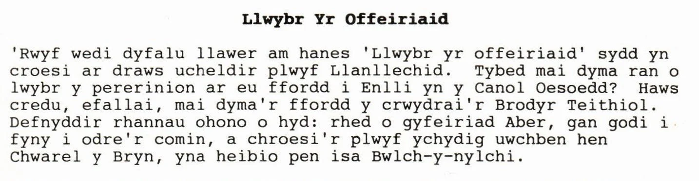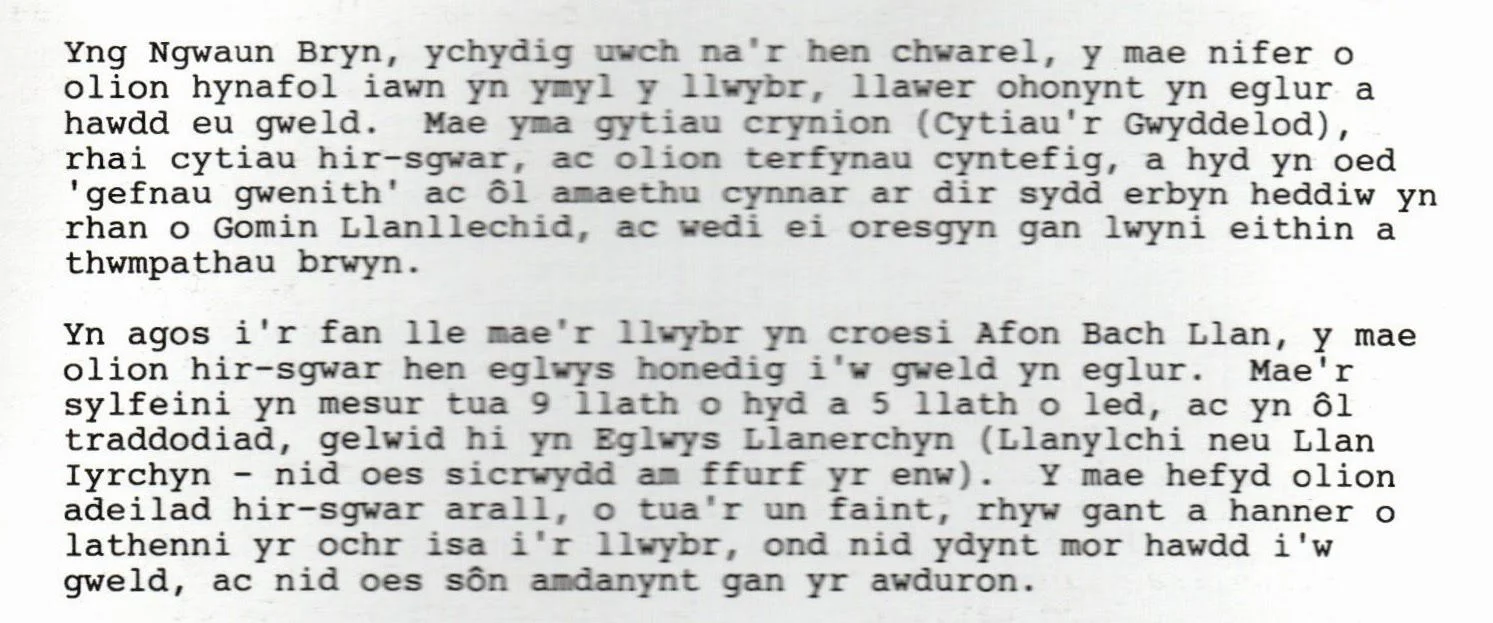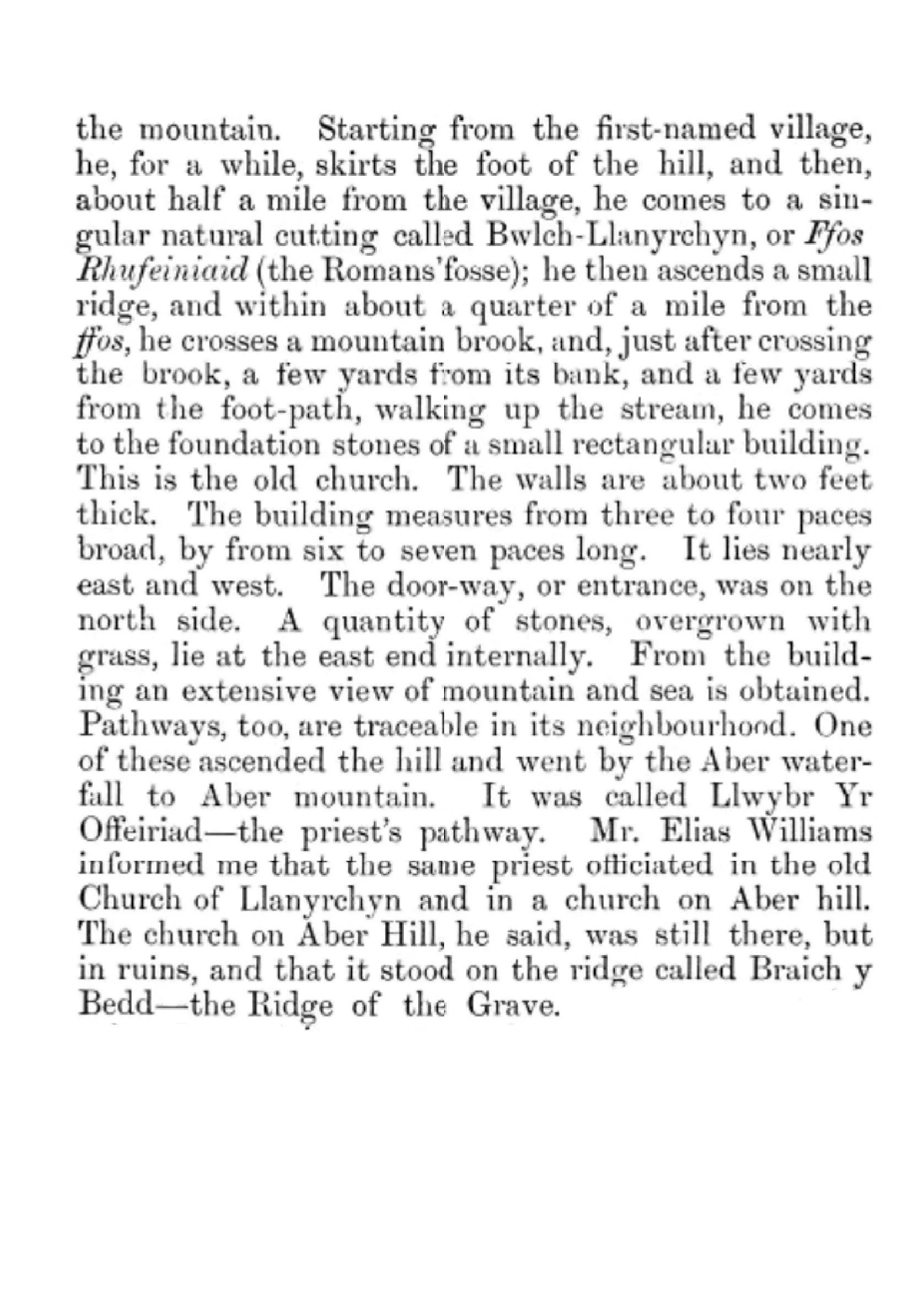 ‘At the north end of this hill ( Moel Faban ) is a hollow, or chasm, called Bwlch Llanyrchyn’.