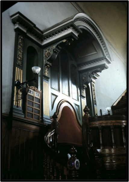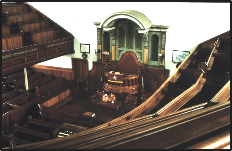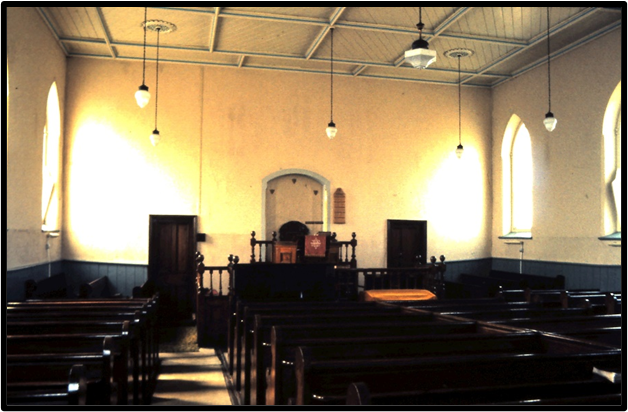 “Y mae y llawr a’r oriel wedi eu llenwi yn dda âg eisteddleoedd cysurus a chyfleus, wedi eu gwneud o pitch pine, ac eistedd o ddeutu 750 ynddo yn gysurus; ac y mae blatfform yn ngwir ystyr y gair i’r llefarwr, a hwnw heb fod yn rhyw ormod o lumber, ac uwch ei ben y mae rhyw beth dyeithrol, wedi ei weithio o goed, ac yn taflu allan dros y lle y saif i llefarwr, ac ettyb yn sounding board”.