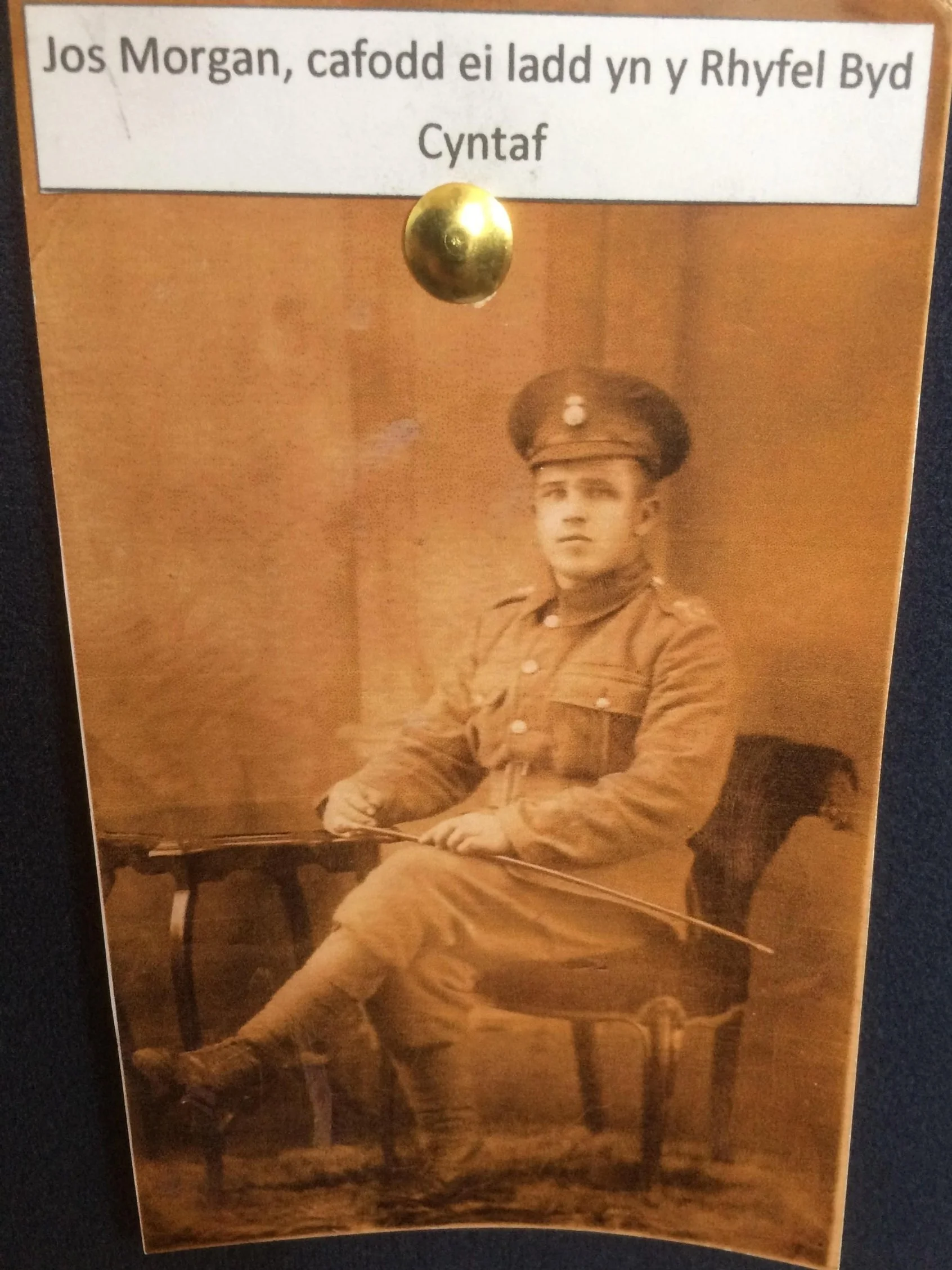 Mab John a Mary J. Morgan oedd Joseph O. Morgan, 23 mlwydd oed pan fu farw yn Ypres, Ffrainc. Roedd y teulu yn byw yn rhif 19 Mountain Rd. Llanllechid, yn ôl y manylion ar garreg fedd y teulu yn y fynwent, ond ar y gofeb yn New Irish Farm Cemetery, gwlad Belg, mae’r canlynol wedi ei ysgrifennu: