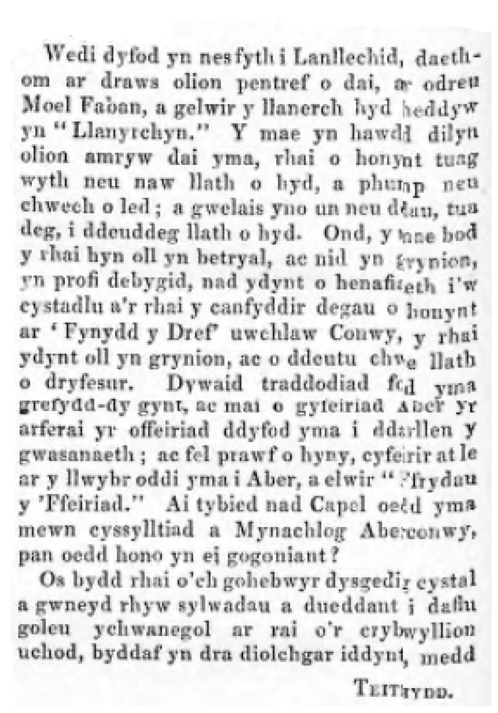 Dyma ran o erthygl gan 'Teithydd' a ymddangosodd yn 'Y Brython' ym mis Mai 1860: