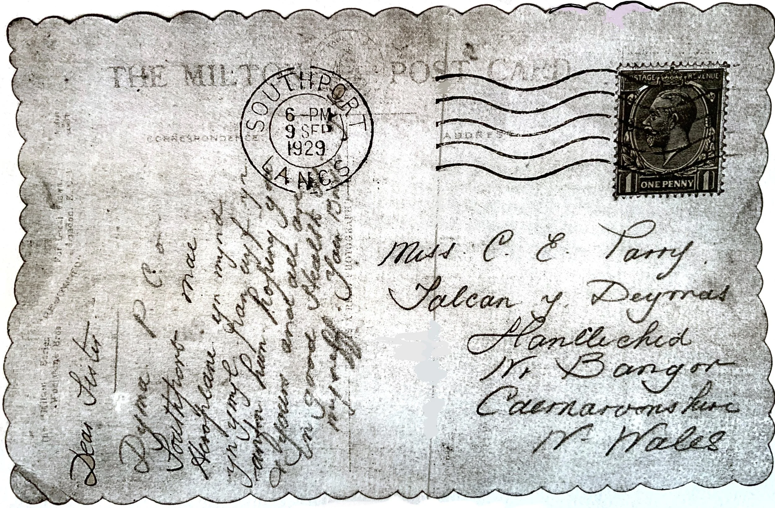 Diolch yn fawr i Mr. Islwyn Evans, Llanfairfechan am gael defnyddio'r cerdyn.